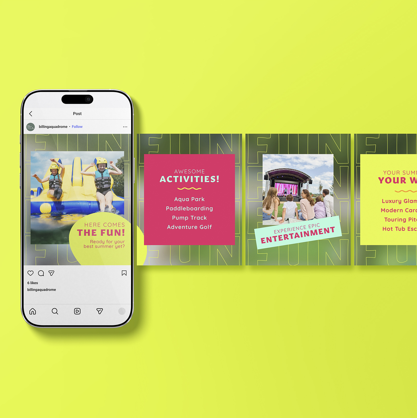 With revitalised parks at Billing Aquadrome and Hayling Island – including new premium caravans, glamping options and an expanded entertainment line-up – our brief was to shift perceptions, build national awareness and drive direct bookings.